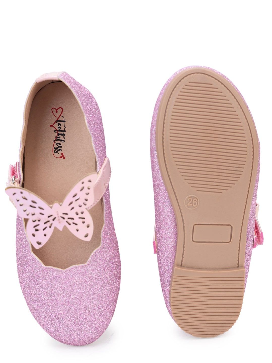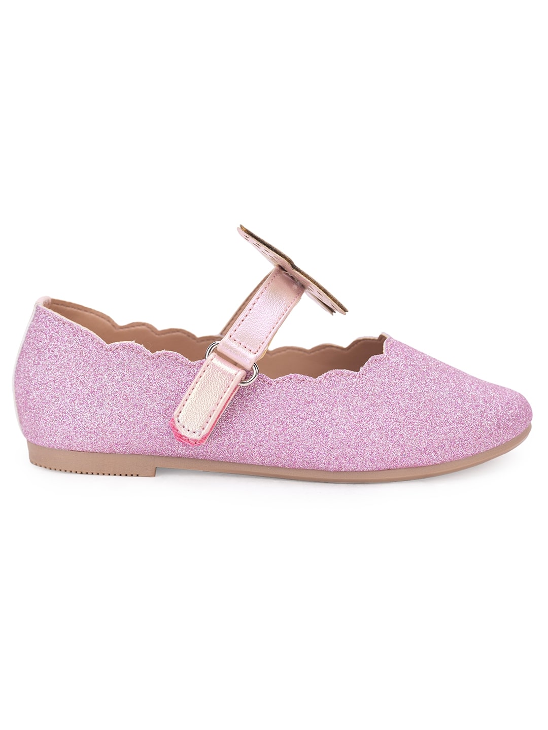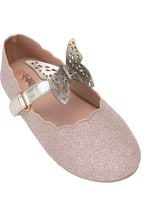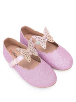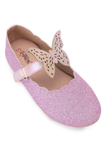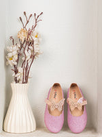 Kids Girls Pink Glitter Butterfly Embellished Design Ballerinas Comfortable for Festive Occasions