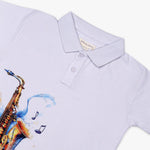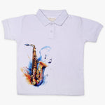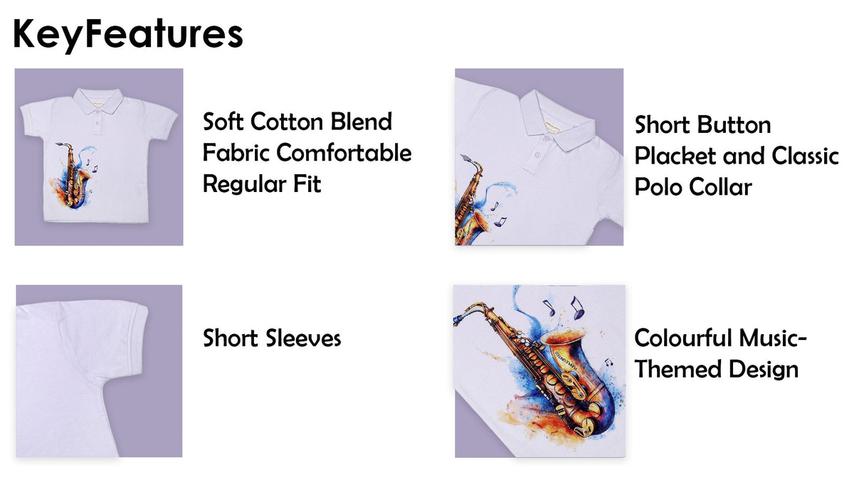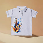 Boys White Polo Neck Cotton Graphic Print Short Sleeve Casual Regular Fit T-Shirt