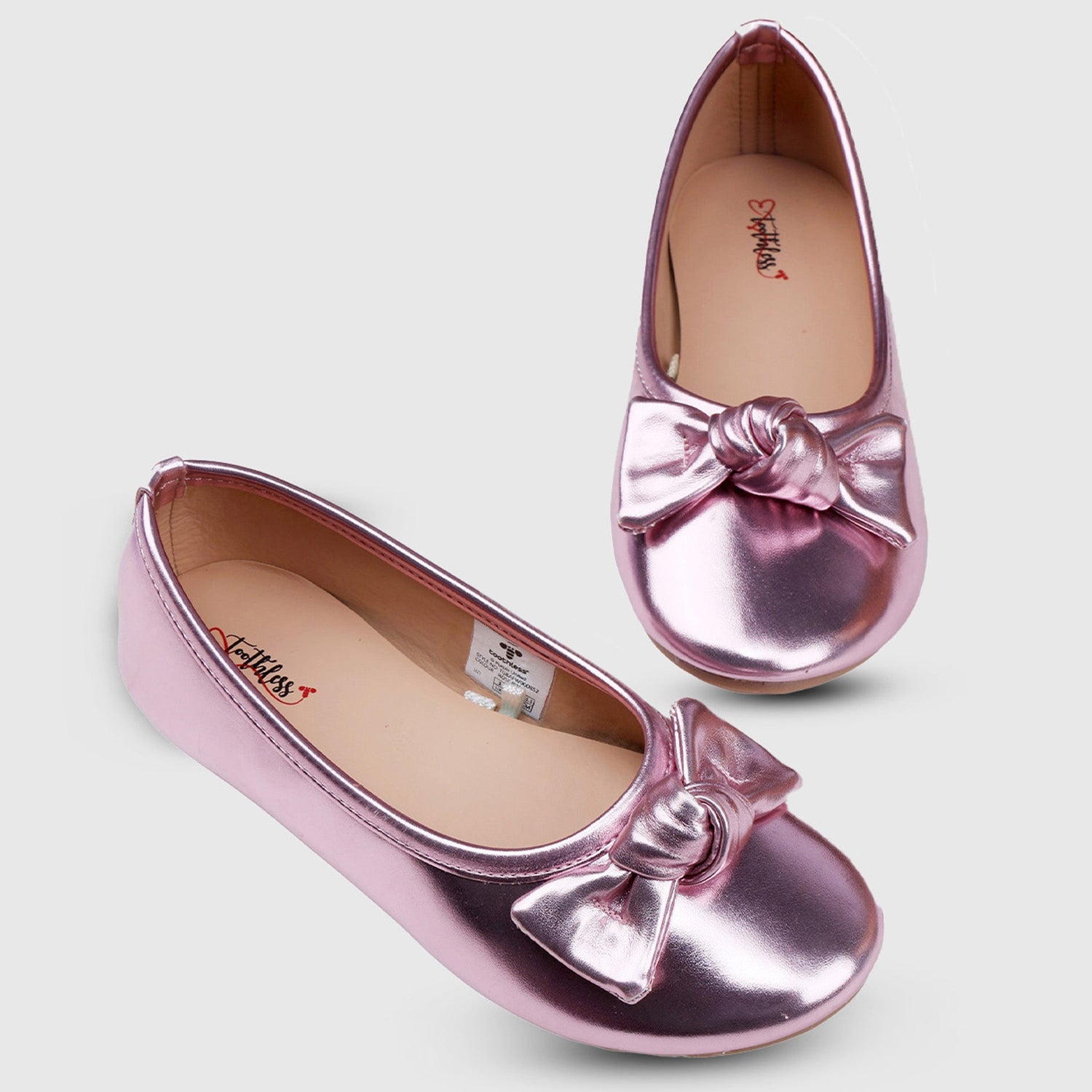 Kids Girls Metallic Ballerinas with Decorative Bow for Festive Occasions
