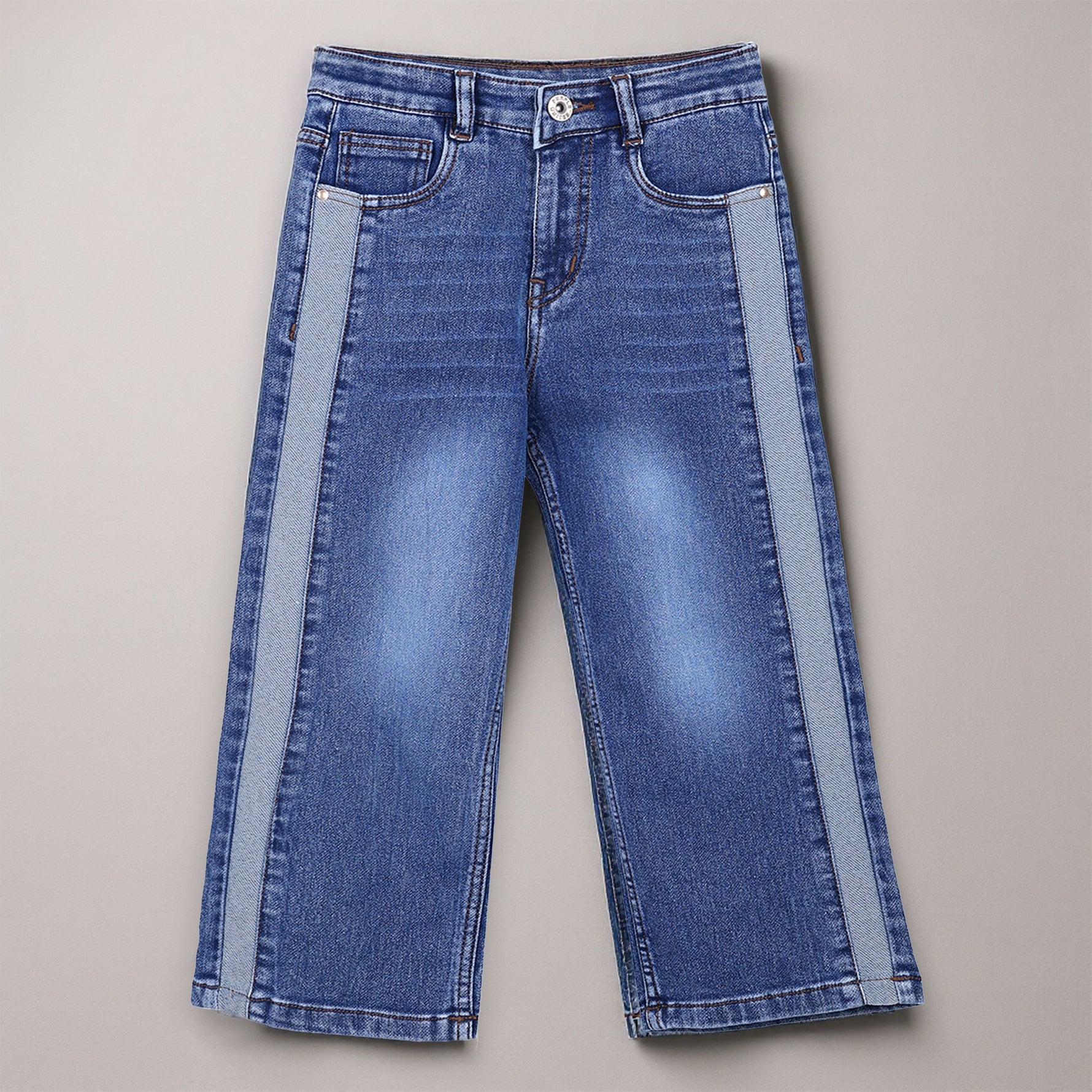 Kids Girls Denim Wide Leg Jeans with Button & Zip Closure