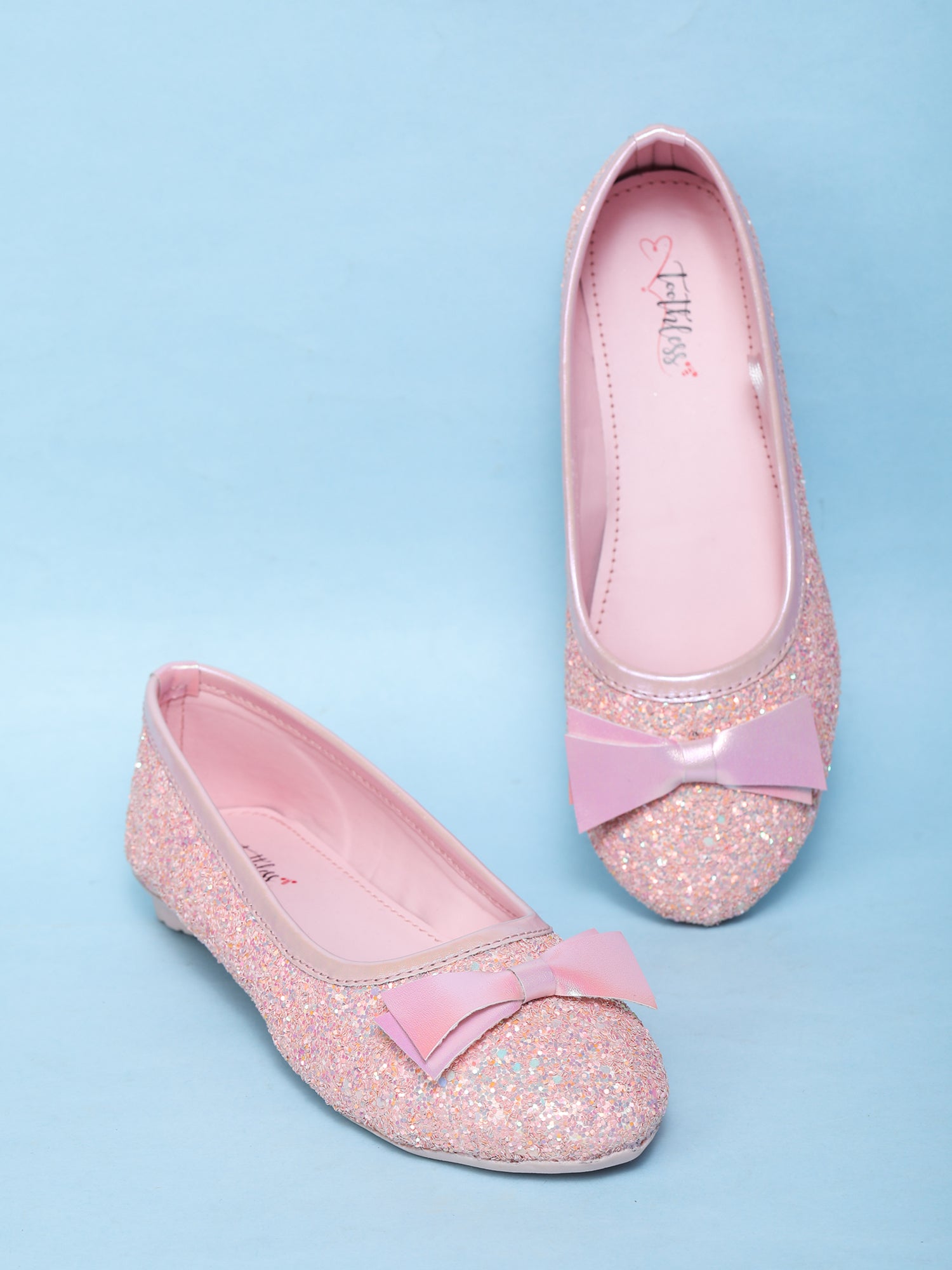 Kids Girls Pink Glitter Butterfly Embellished Design Ballerinas Comfortable for Festive Occasions