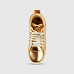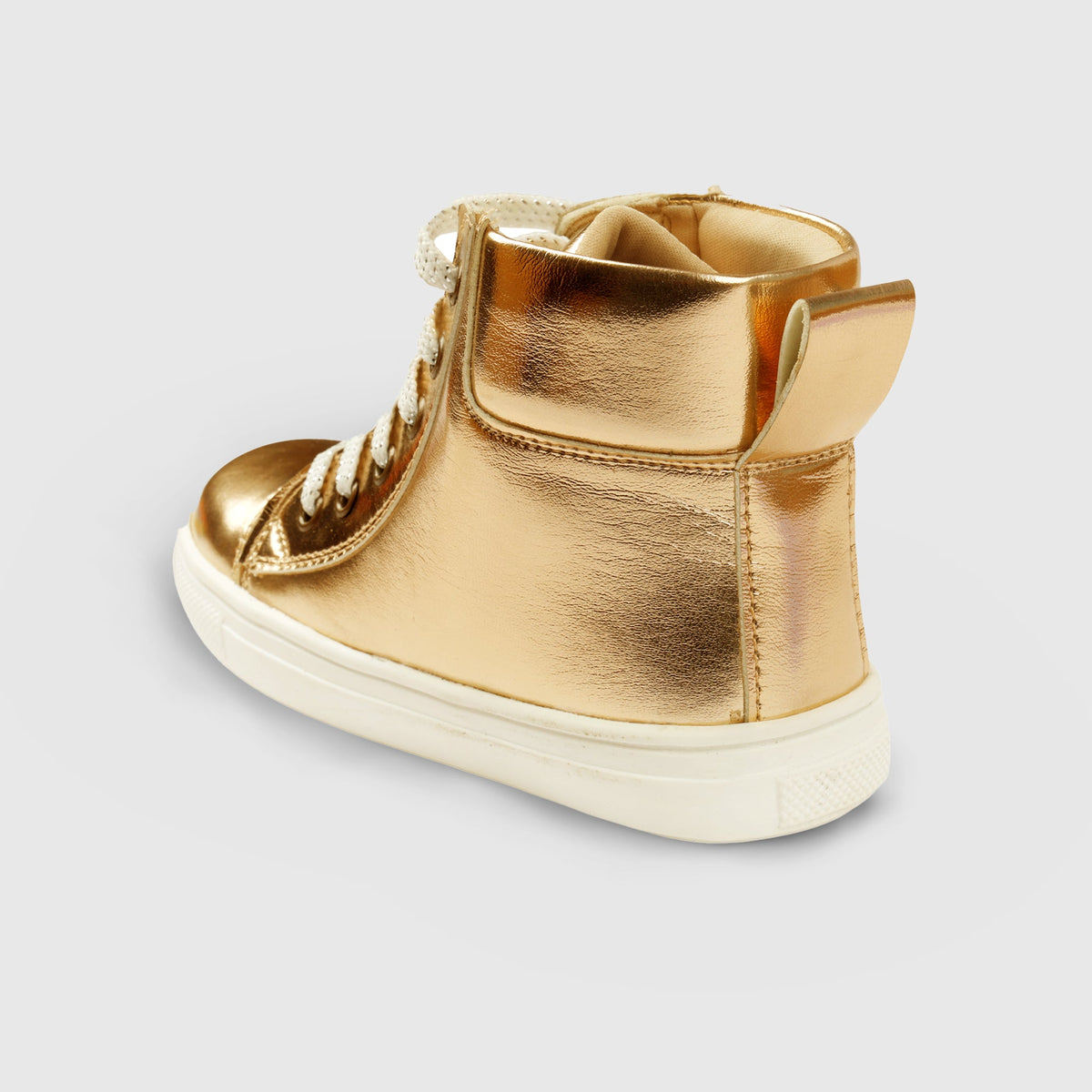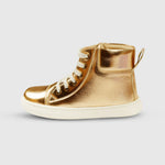 Let your child step out in style with these eye-catching high-top Shoes. Designed to shine and stand out, these shoes feature a sleek metallic finish and a trendy silhouette which is perfect for parties, everyday outings, or school events. The high-top design not only looks cool but also provides a bit of extra support around the ankles. Made from sturdy PU upper material, these Shoes are both durable and easy to care for. Inside, a soft lining and cushioned footbed keep things comfortable, even during long days of running, walking, or playing. The lace-up closure gives a secure fit that adjusts easily to your child’s foot. A non-marking, grippy rubber sole adds safety and stability, whether they’re indoors or out. Lightweight and super versatile, these Shoes go great with anything from jeans to skirts to dresses. A fun and stylish addition to any kid’s everyday wardrobe.