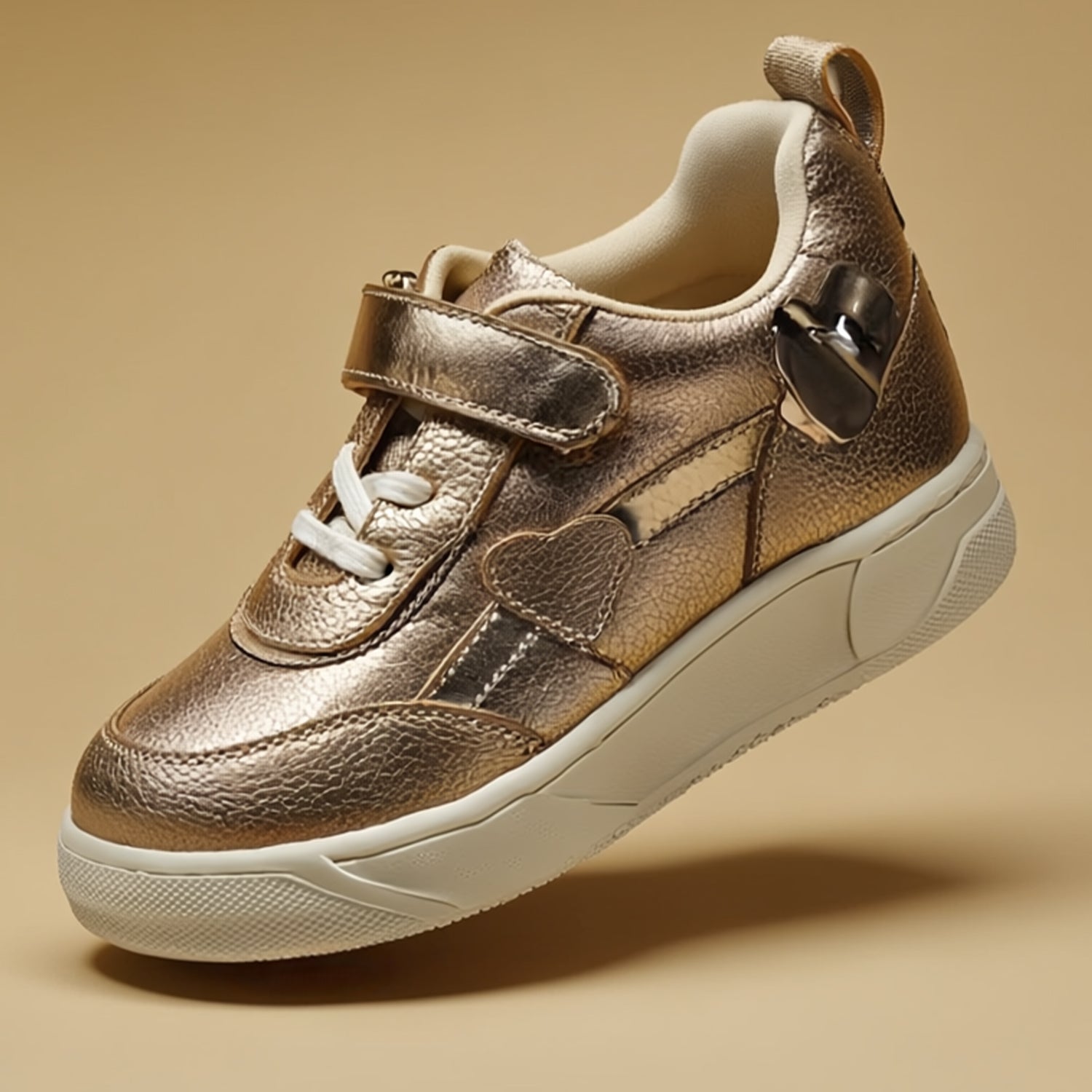 Kids Girls Casual Sneakers with Heart Detail & Velcro Strap Adjustable Fit