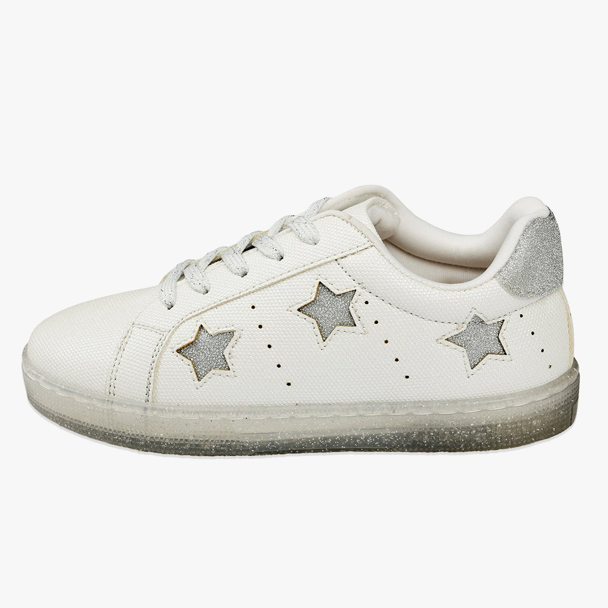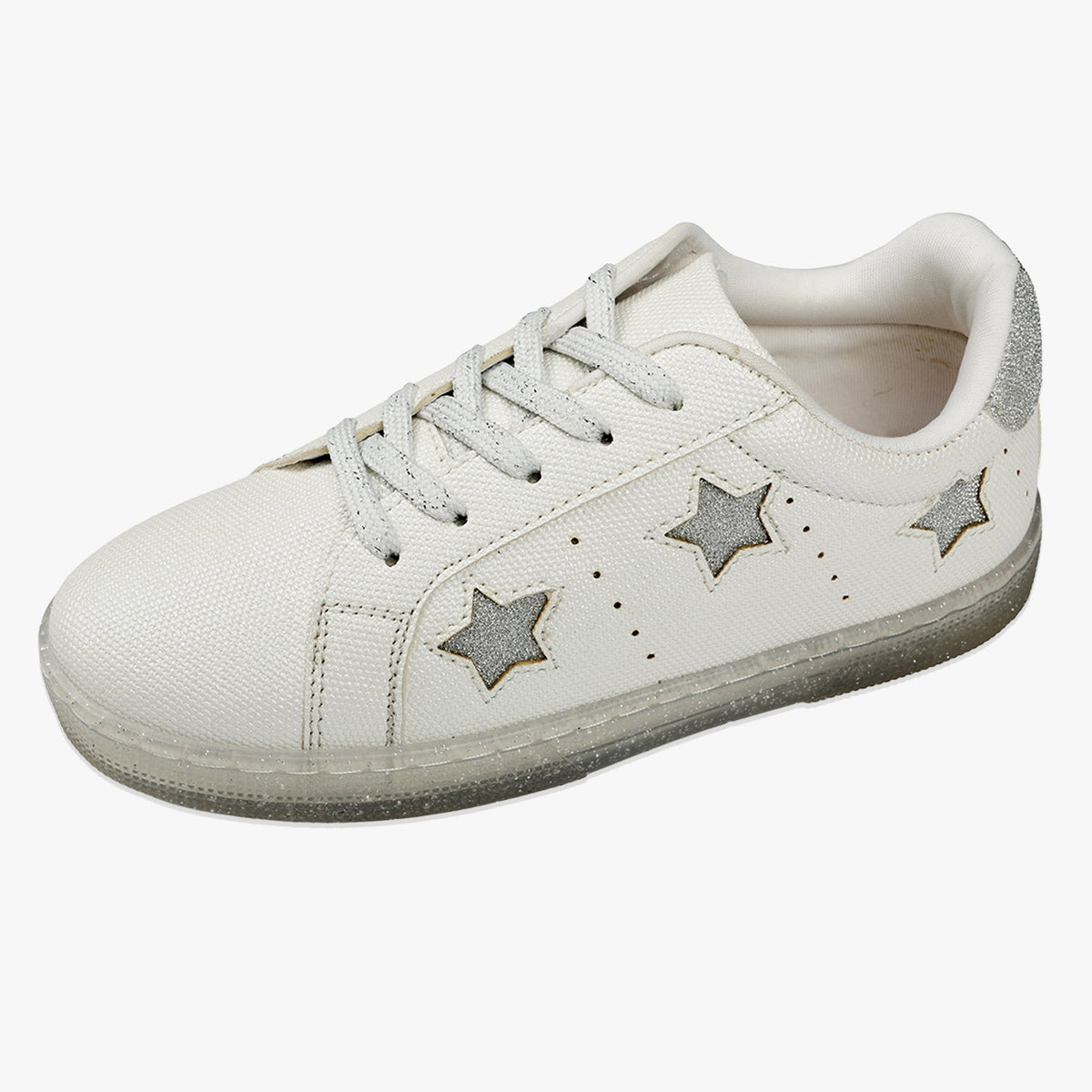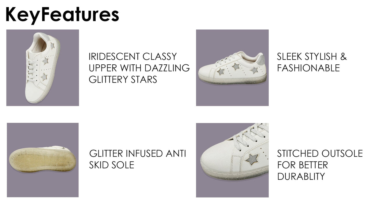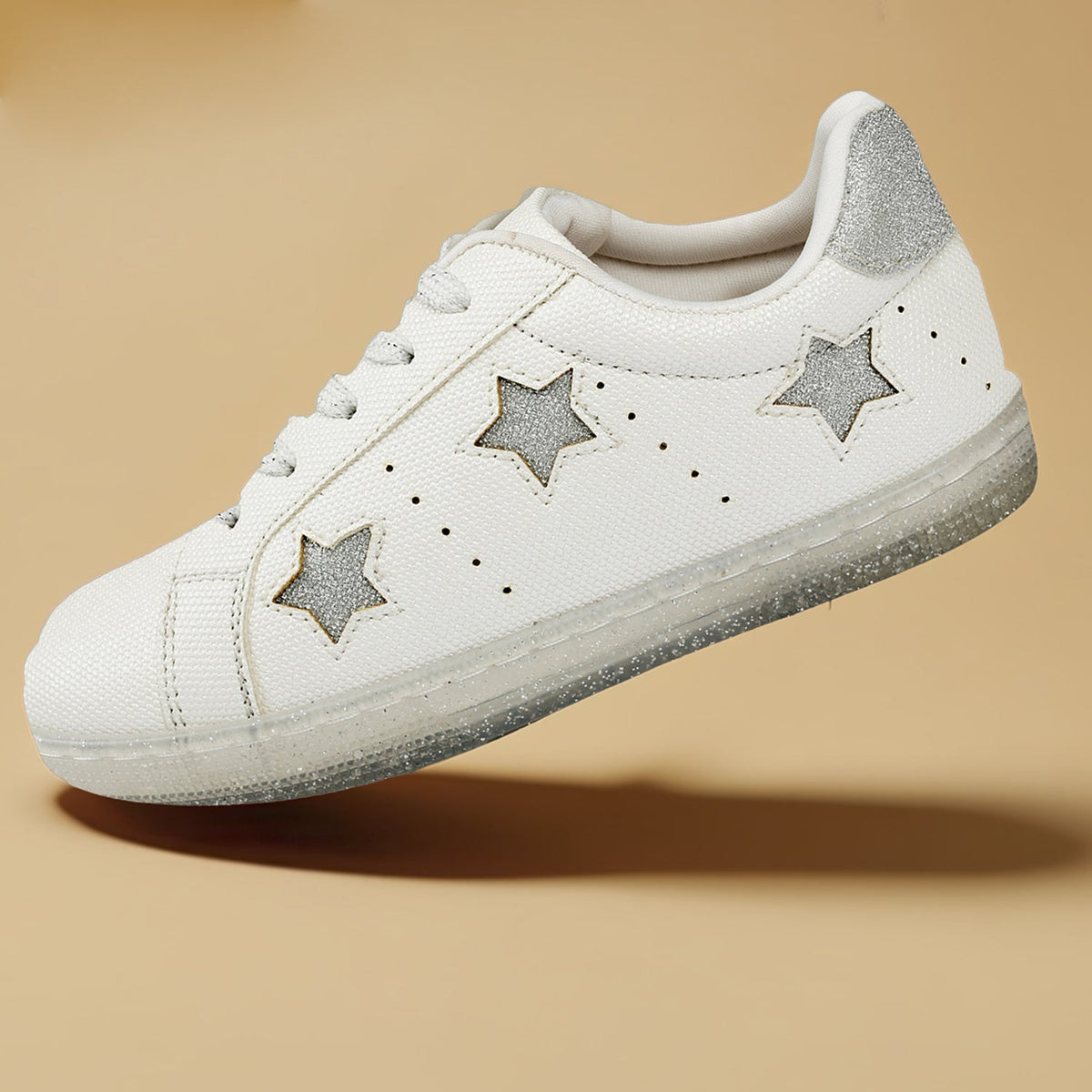 Girls White Glitter Shoes Anti Skid Fashion Shoes with Dazzling Stars Premium Kids Shoes TPR anti-skid sole Lightweight Comfortable Fashion Shoes EVA body
