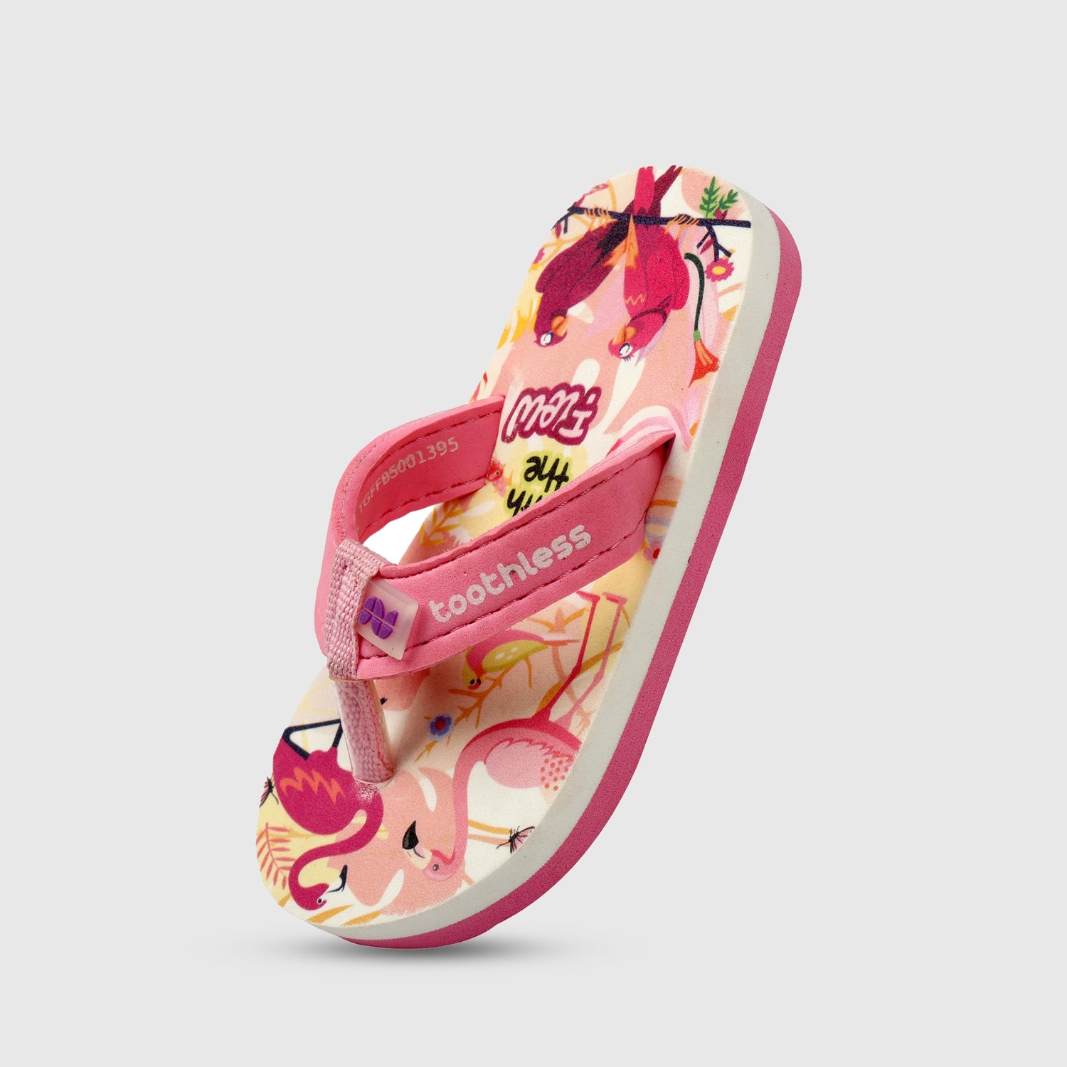 Add a playful twist to your child’s summer look with the toothless Kids Girls Printed Flip-Flops. Designed for comfort, style, and ease of wear, these adorable sandals feature a vibrant flamingo-themed print on a soft footbed that keeps little feet happy all day.
