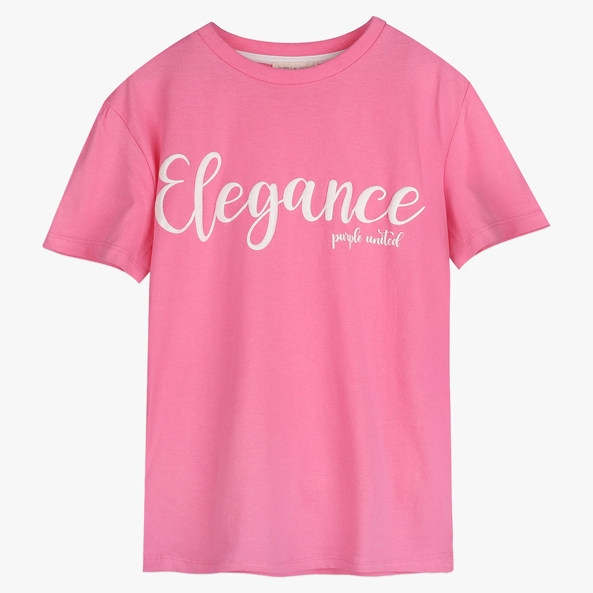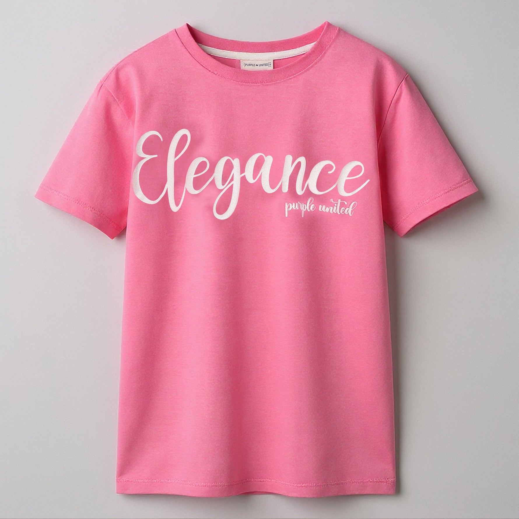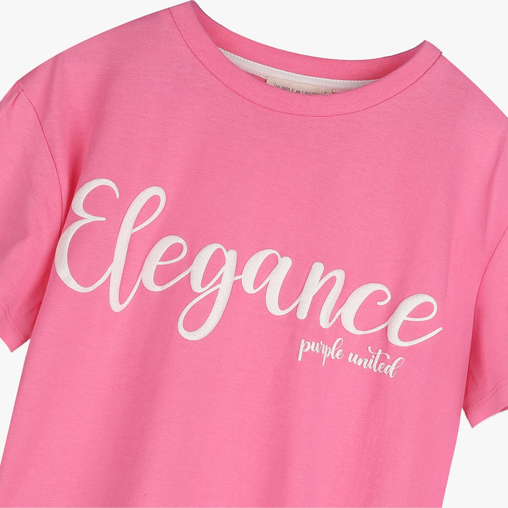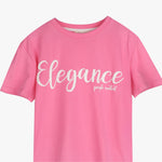 Girls Graphic T-Shirt Short Sleeves Crew Neck Soft Single Jersey Fabric “Elegance” Slogan Print Casual Wear For Kids
