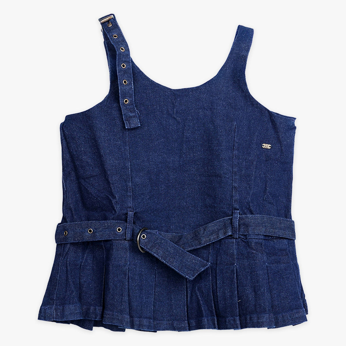 Kids Girls Denim Sleeveless Regular Fit Top with Adjustable Strap