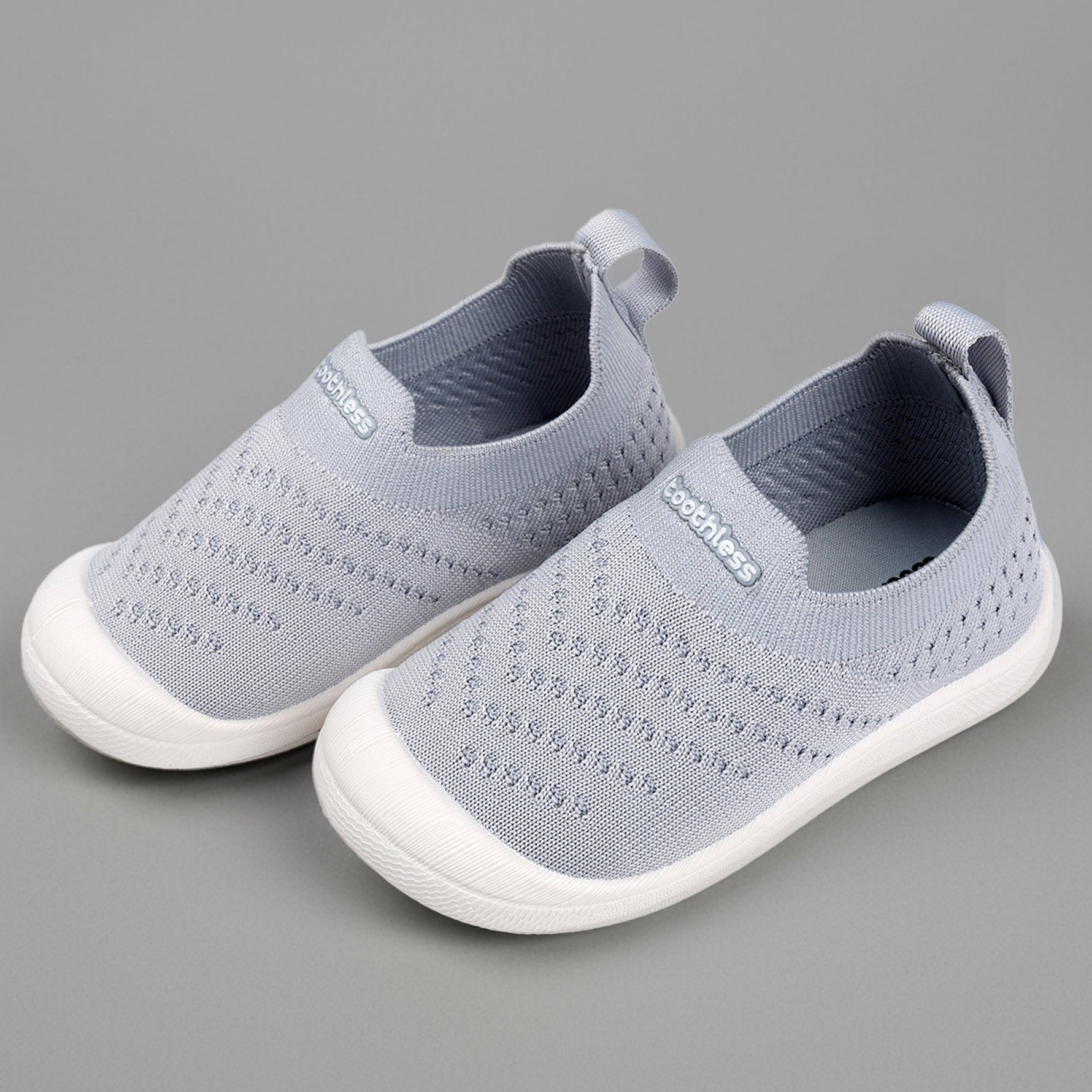 Kids Boys Grey Casual Shoes Breathable Knit Slip-On Shoes with Soft Sole & Anti-Slip Grip Lightweight & Flexible Daily Wear Footwear for Toddlers