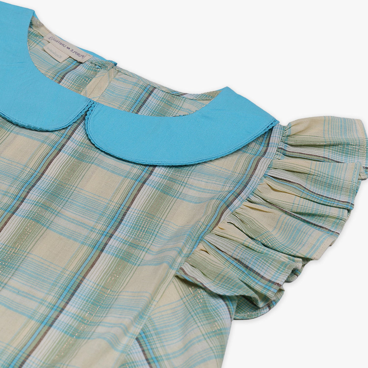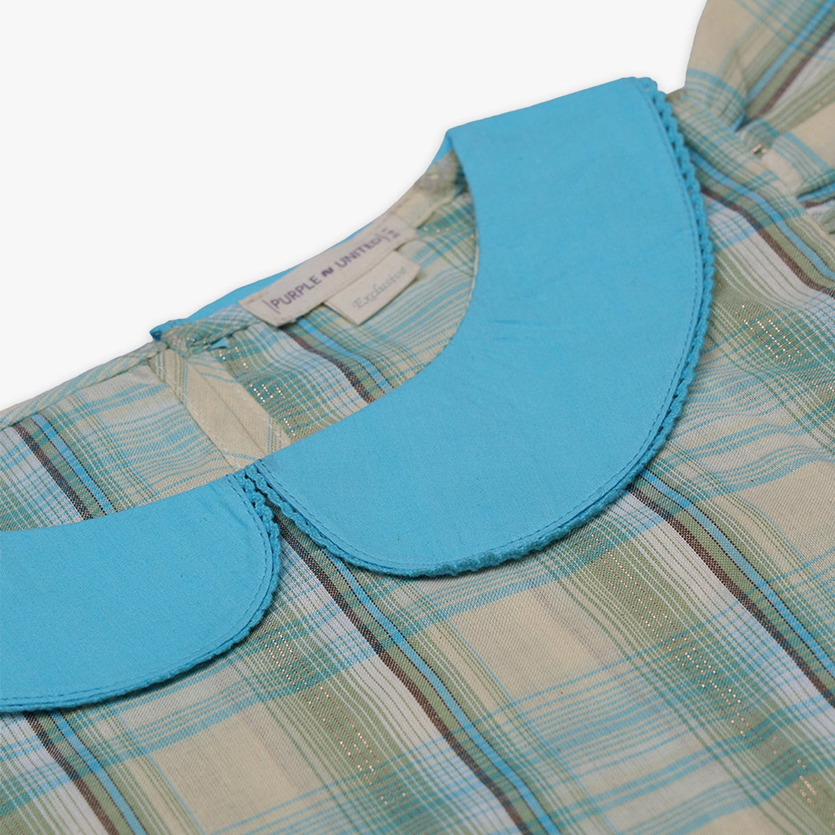 Take a look at this Purple United Kids Girls Checkered Dress. This dress has an overall check pattern. The dress is incredibly light and airy. The shape of the dress is elegant abd the solid Peter Pan collar gives it a playful, youthful vibe. The short frill ruffled sleeves are the perfect look.