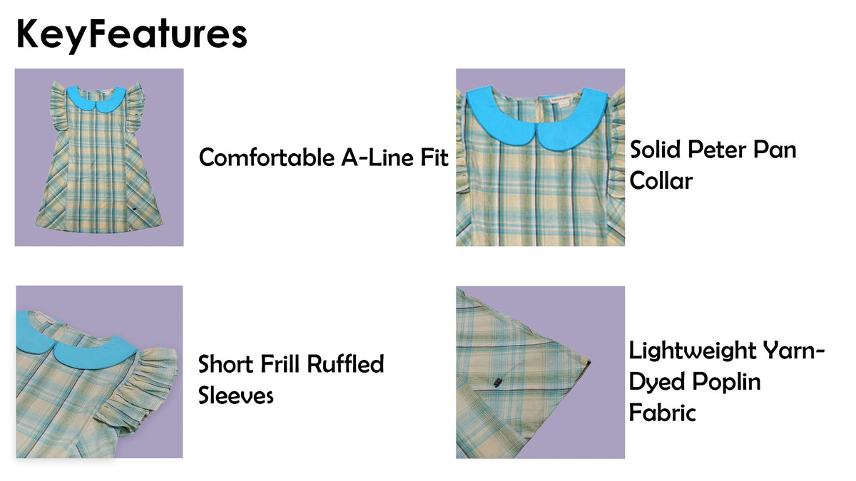 Made from a yarn dyed poplin fabric, which makes it breathable, soft and lightweight, keeping the little one all the cool all day, whether it's a family outing. The A-line shape enables lots of ease of movement with a soft finish which is gentle on skin. A perfect dress for warmer weather, when your style can be casual yet tasteful, practical and stylish. You don't ever have to compromise on style and comfort!