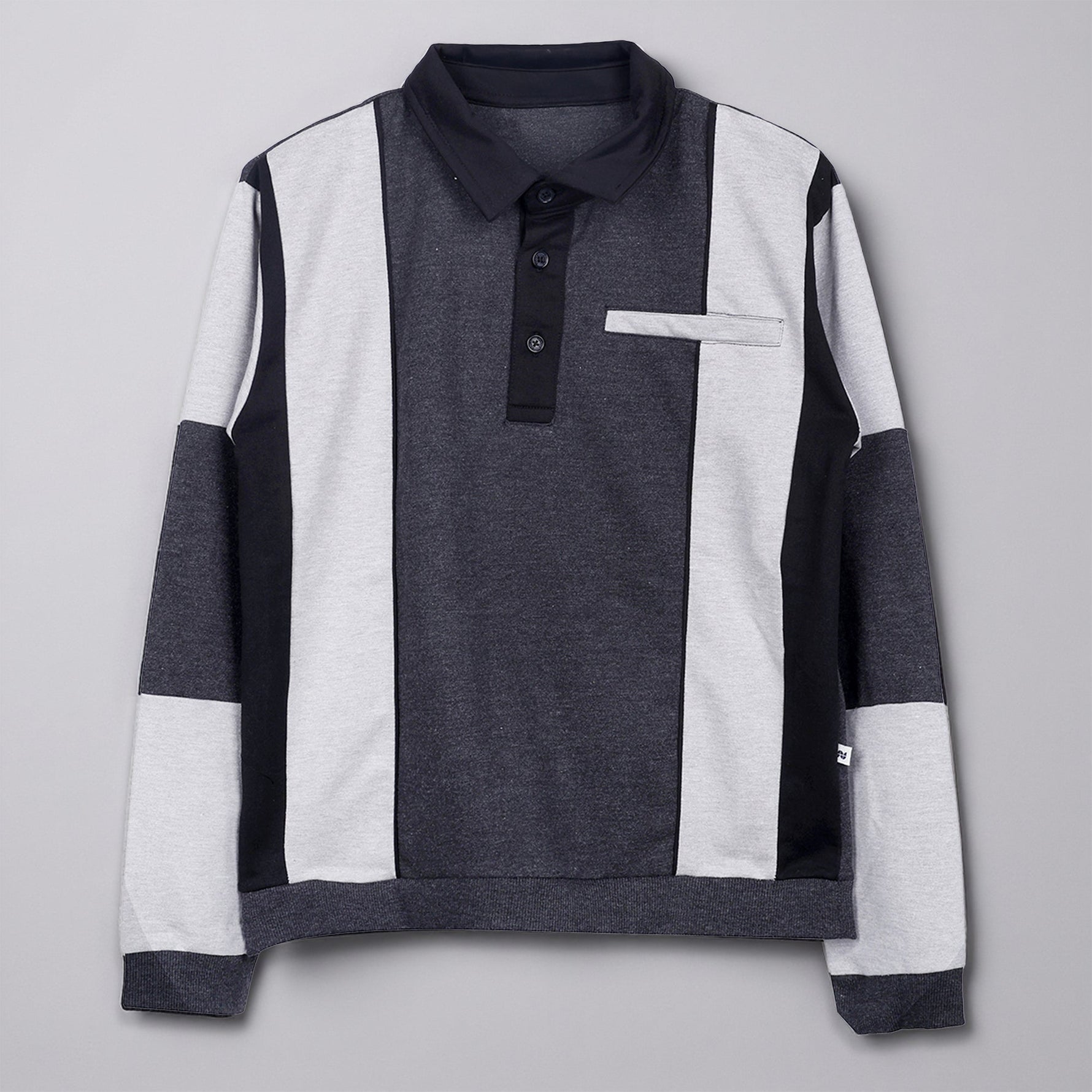 Boys Striped Polo Sweatshirt Contrast Color Block Design Regular Fit Collared Neck Casual & Comfort Everyday Wear