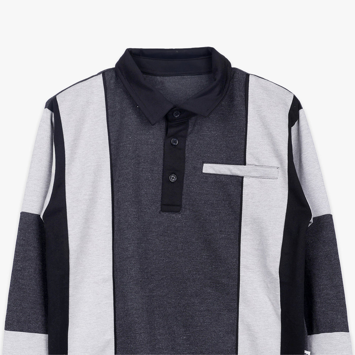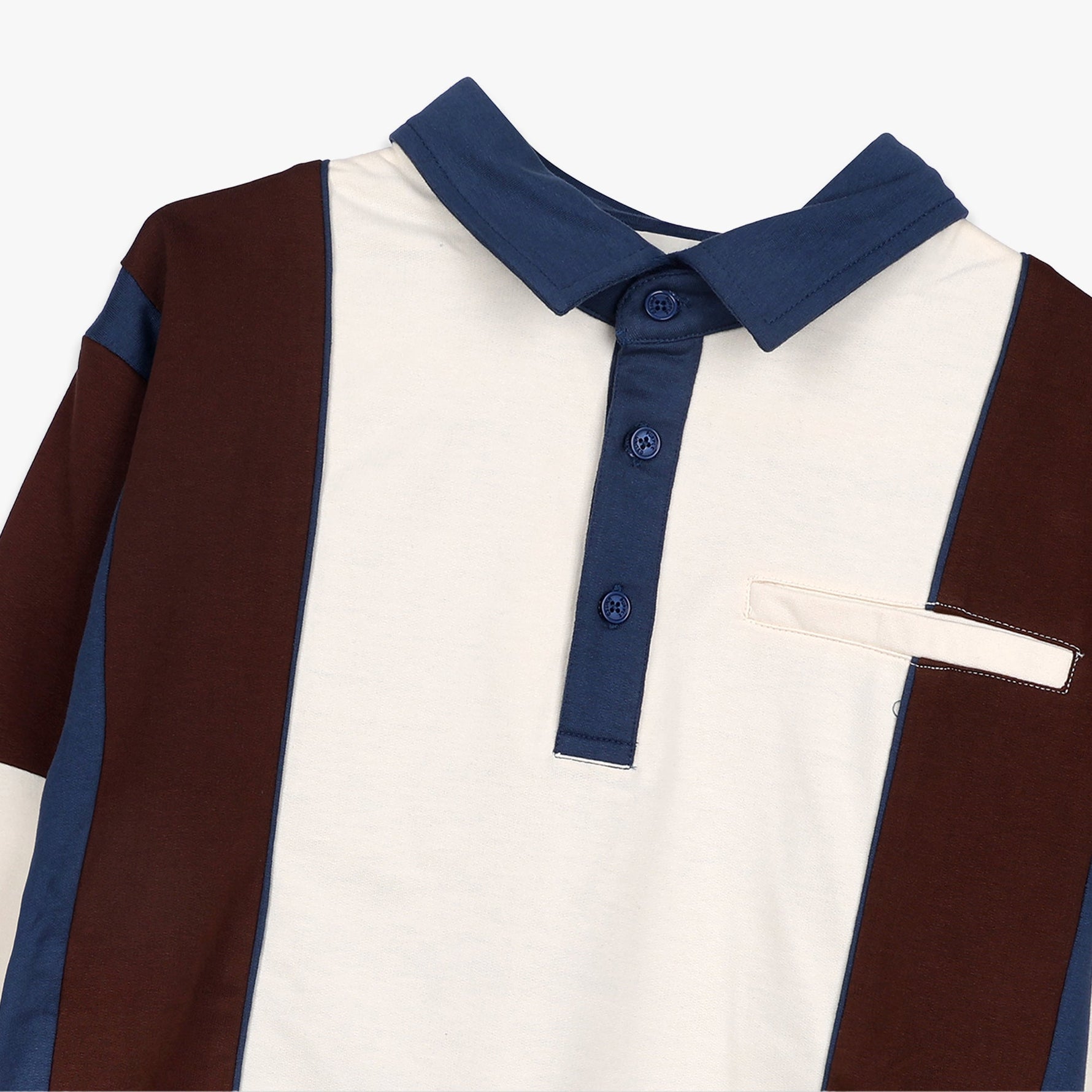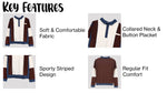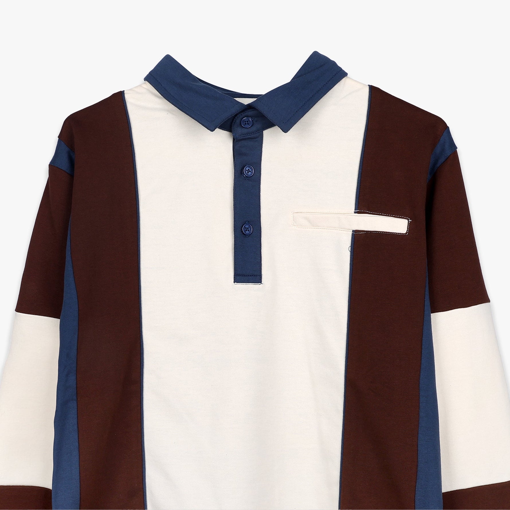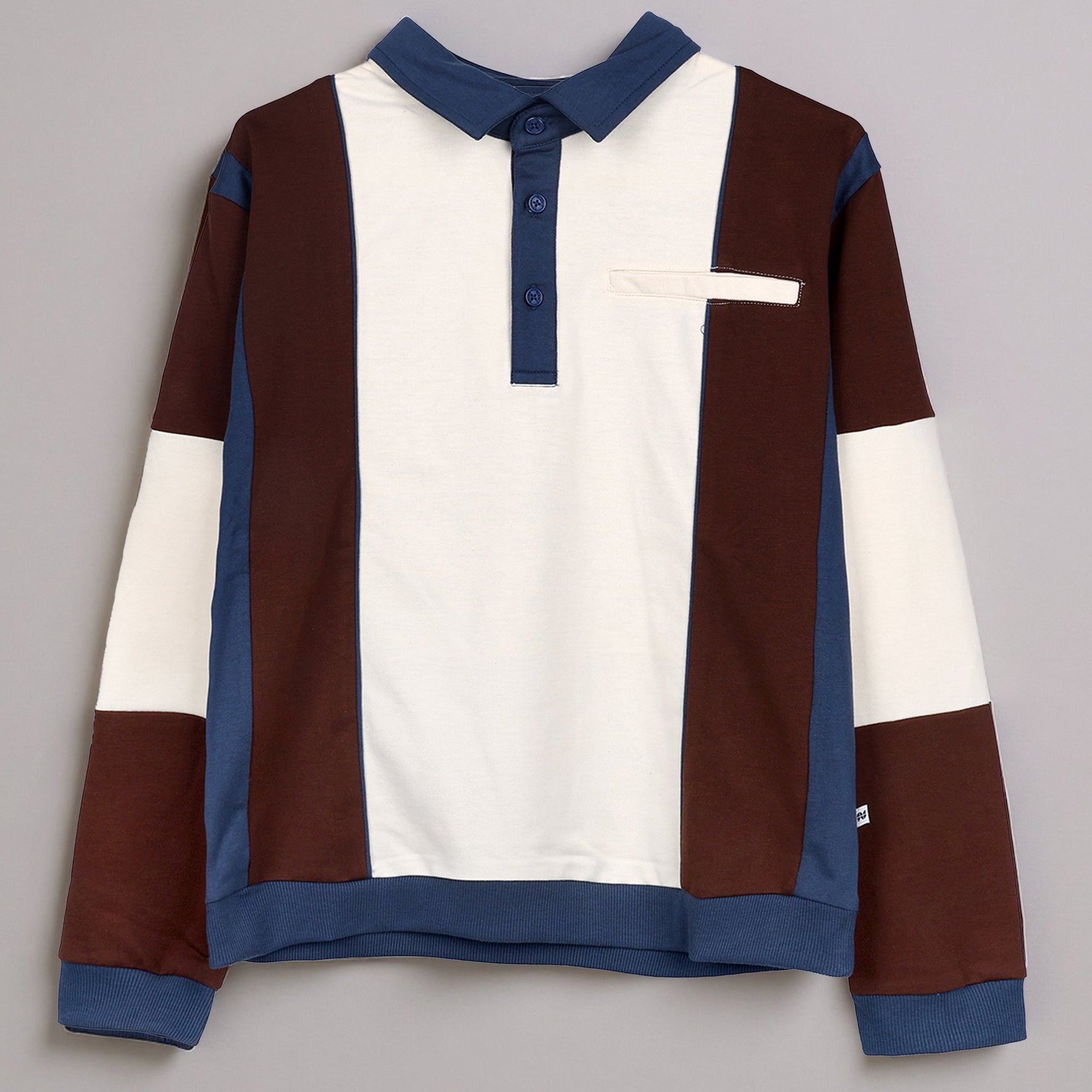 Boys Striped Polo Sweatshirt Contrast Color Block Design Regular Fit Collared Neck Casual & Comfort Everyday Wear