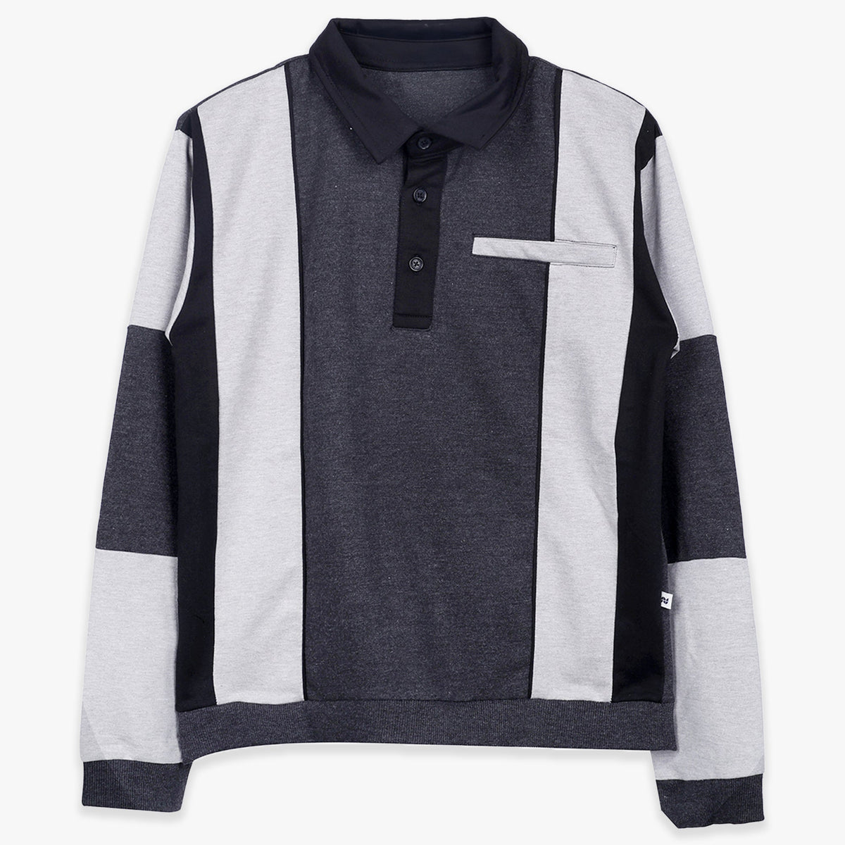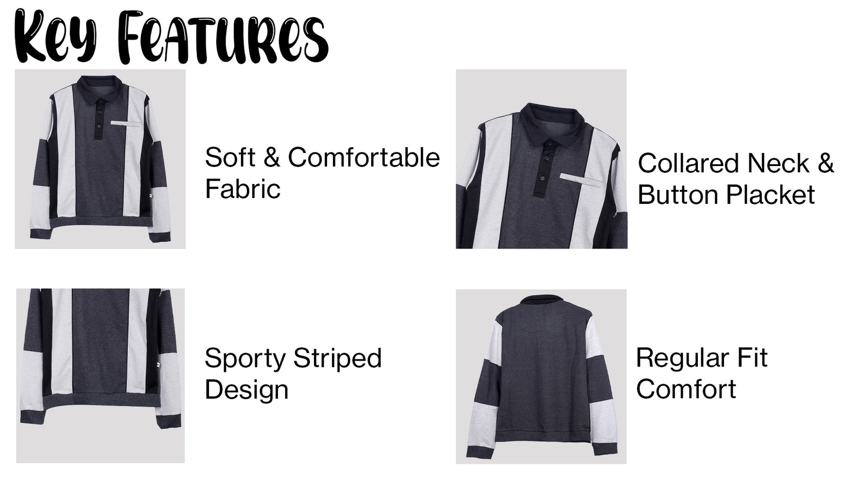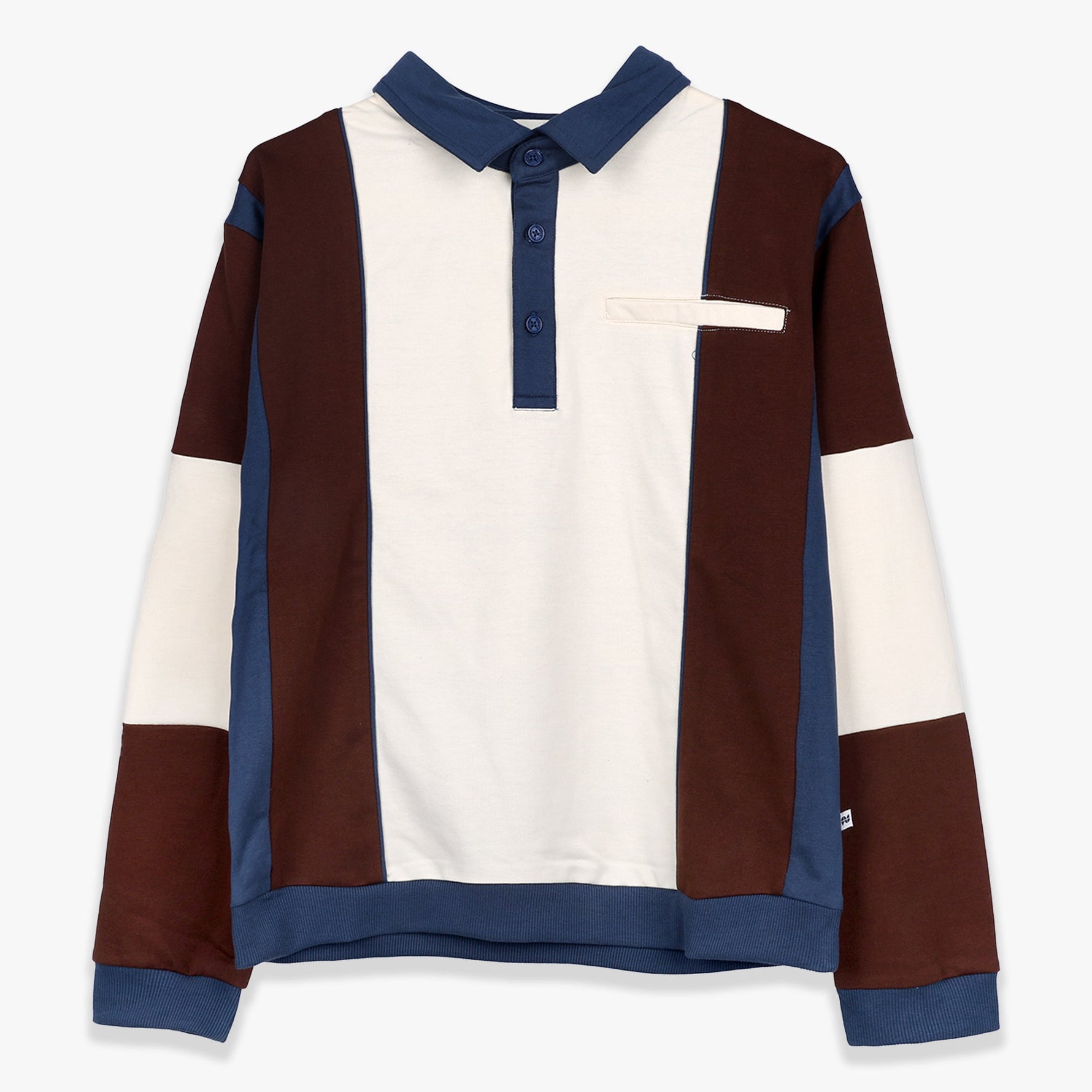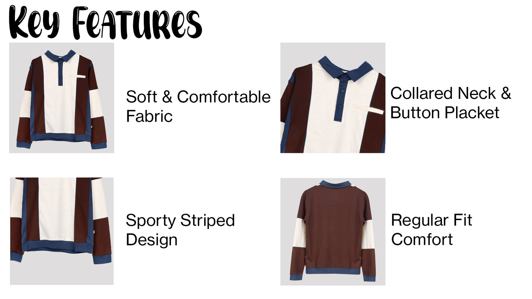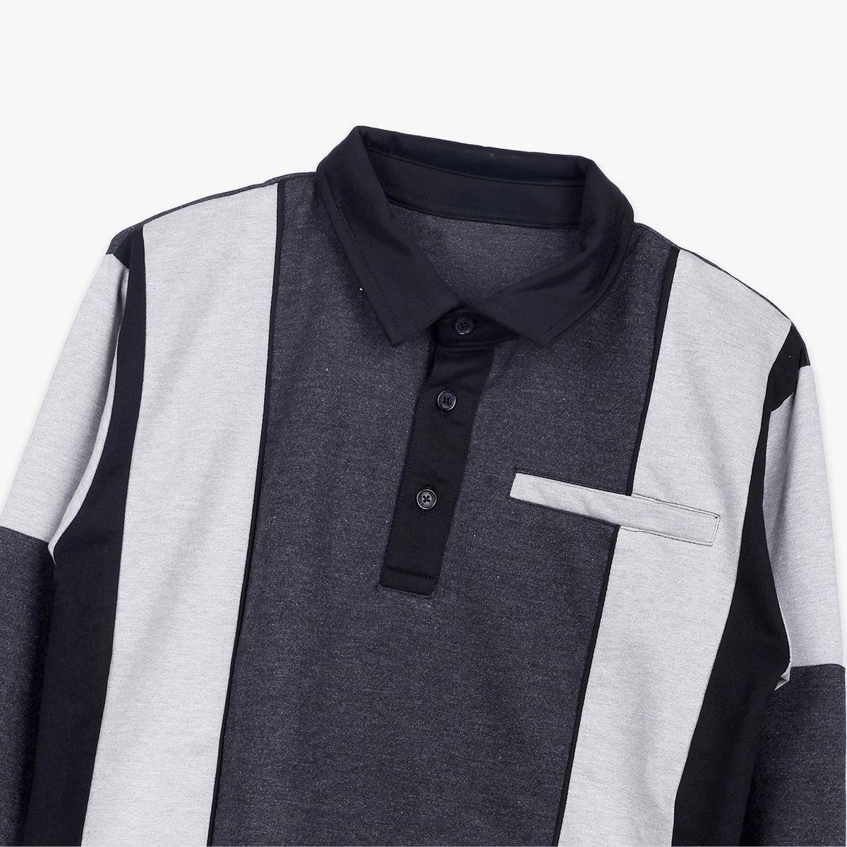 Boys Striped Polo Sweatshirt Contrast Color Block Design Regular Fit Collared Neck Casual & Comfort Everyday Wear