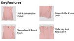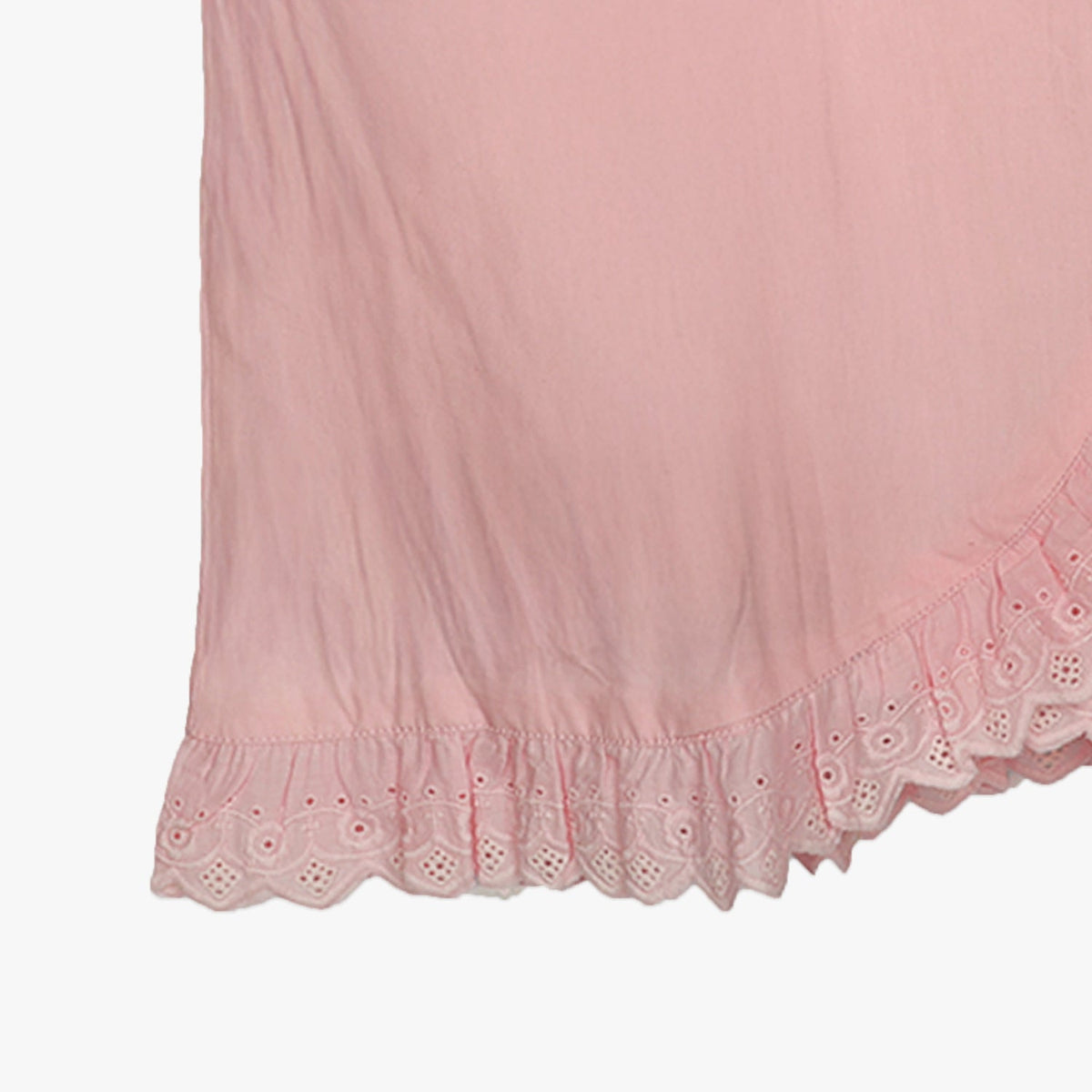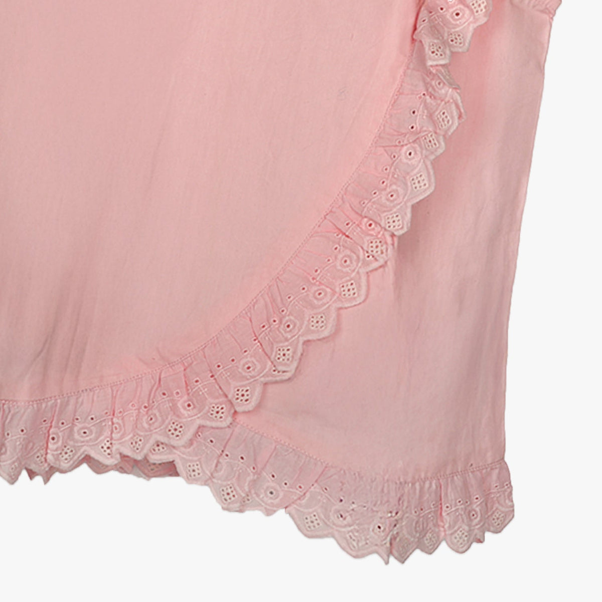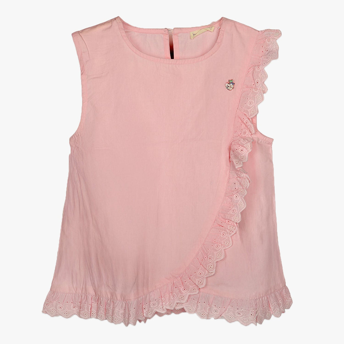 Girls Light Pink Sleeveless Top Soft Cotton Blend Round Neck Solid Color Soft & Breathable Fabric Lace Ruffle Detail Casual & Party Wear