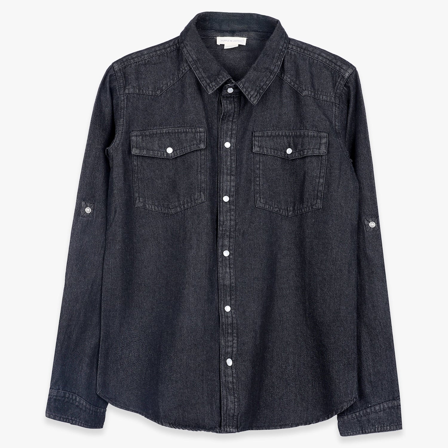 Boys Denim Shirt Full Sleeves Regular Fit Collared Neck Curved Hem Casual Wear For Kids