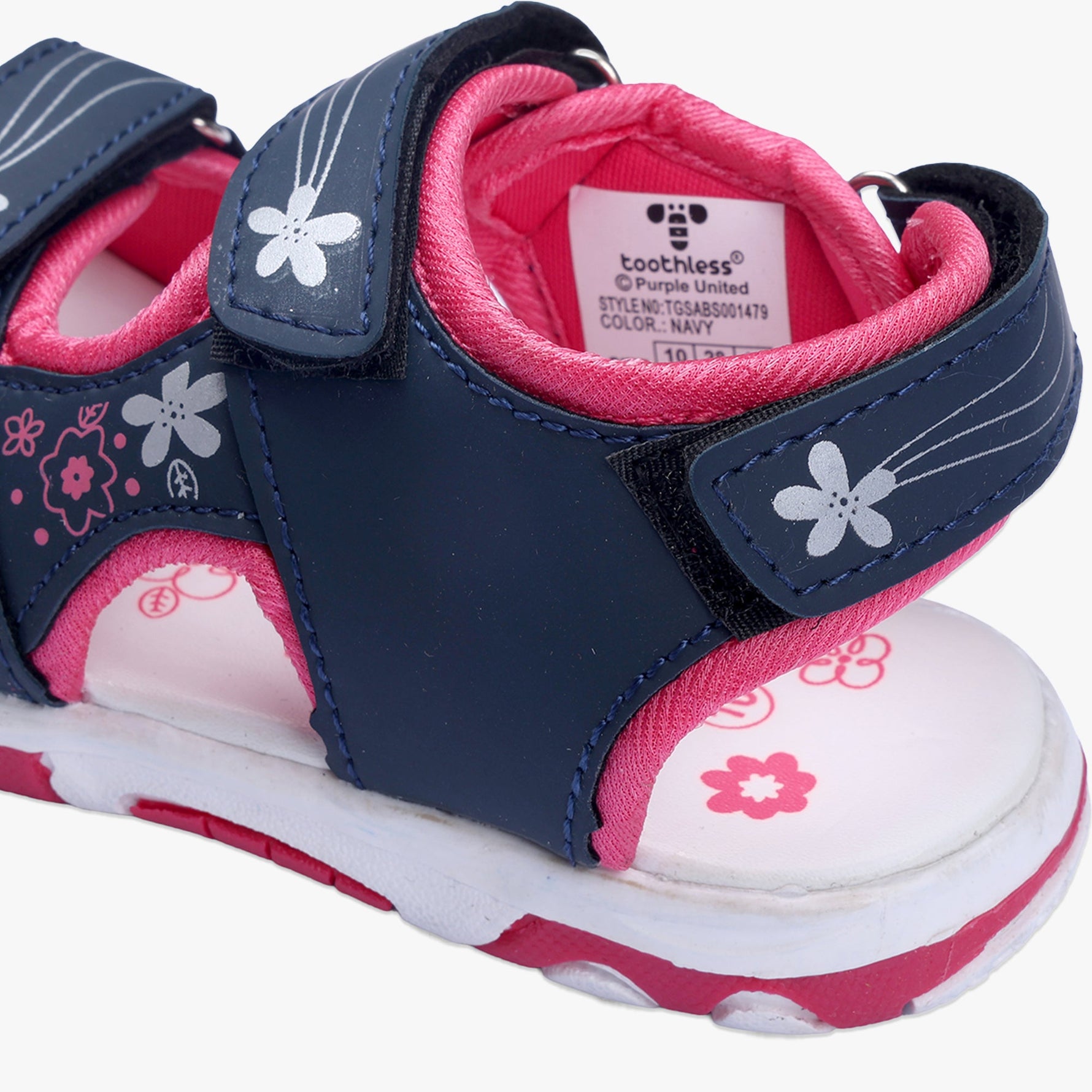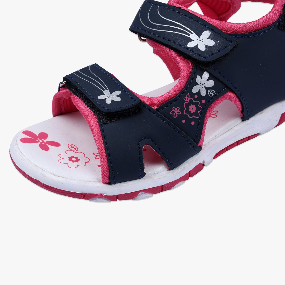 Girls Casual Sandals Printed Synthetic Upper Cushioned Footbed Dual Color Anti-Skid TPR Sole Adjustable Velcro Straps Lightweight & Comfortable