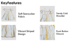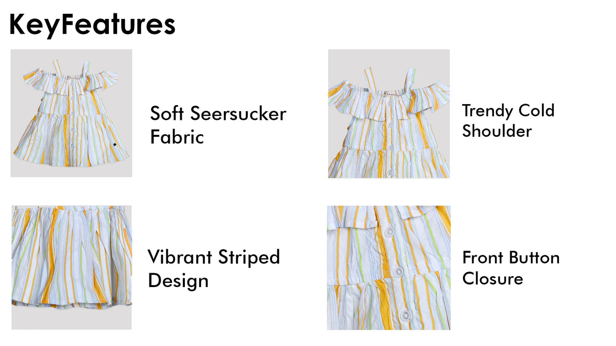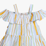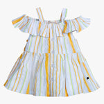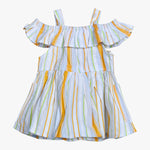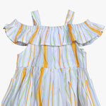 Girls Orange & White Multicolor Striped Cotton Dress Off-Shoulder Tiered Dress with Shoulder Straps Lightweight Breathable Casual Dress for Girls Stylish Everyday Wear