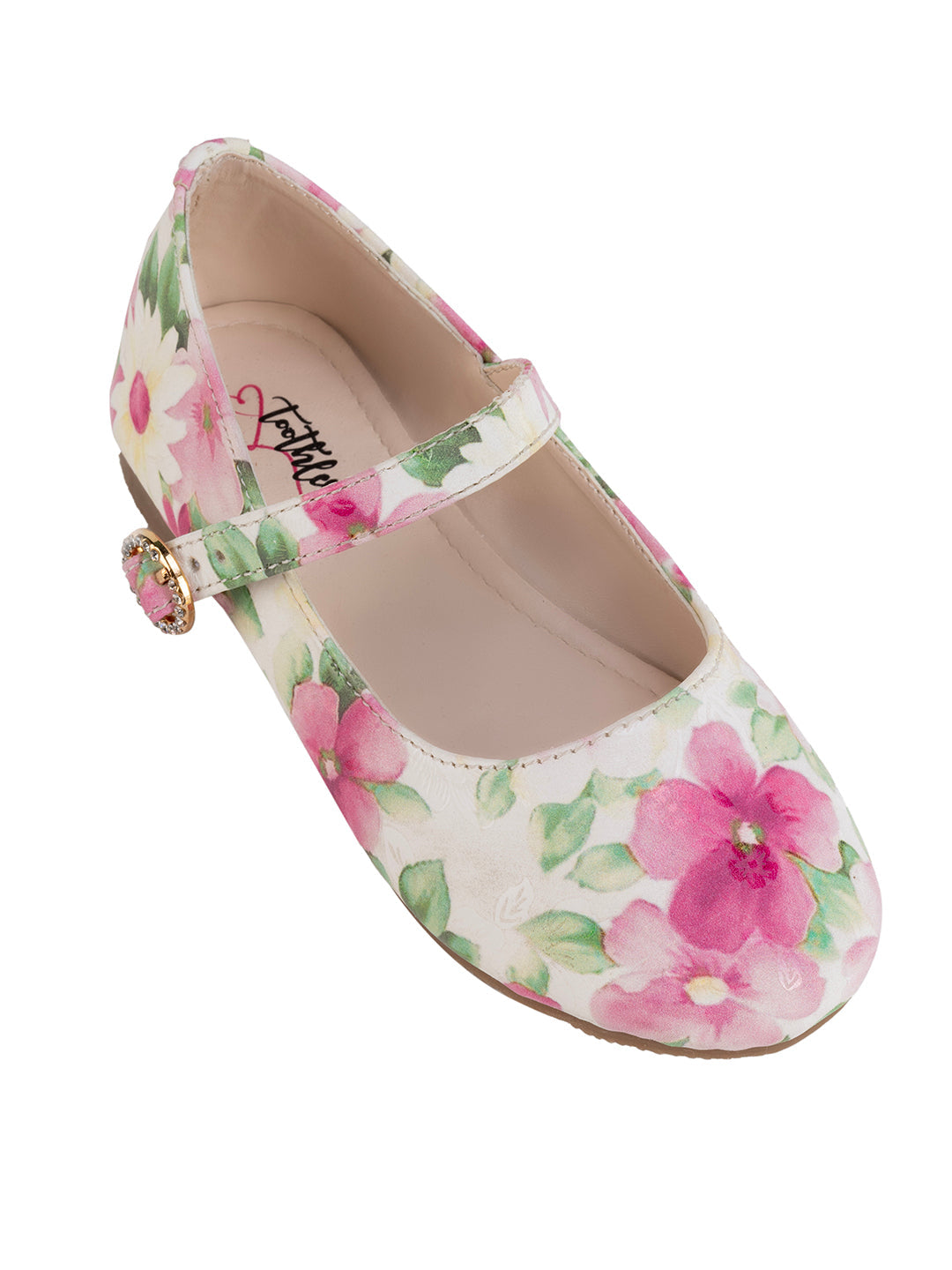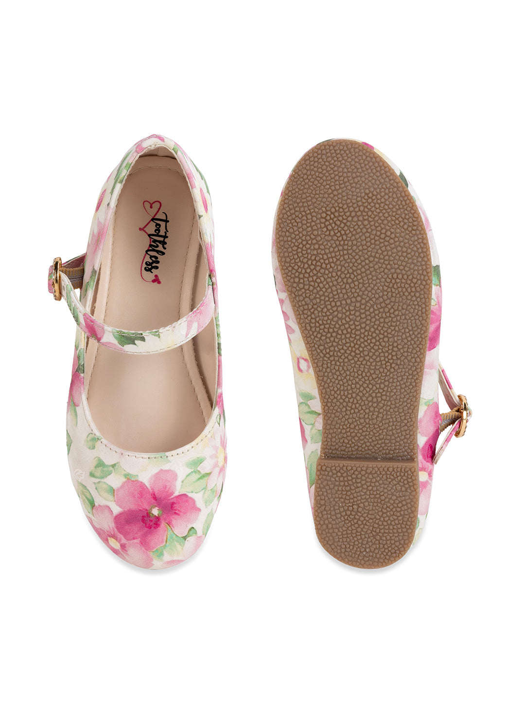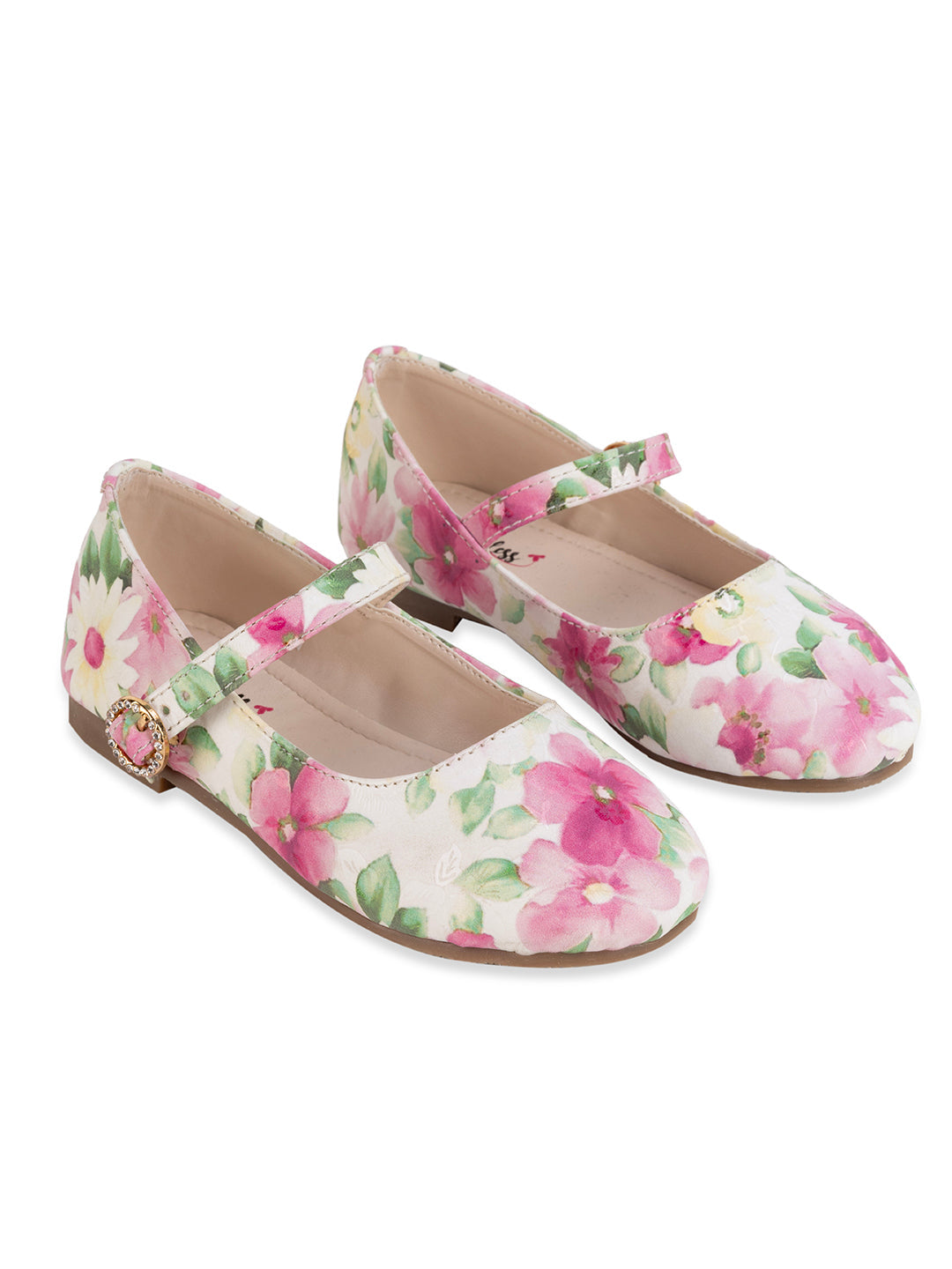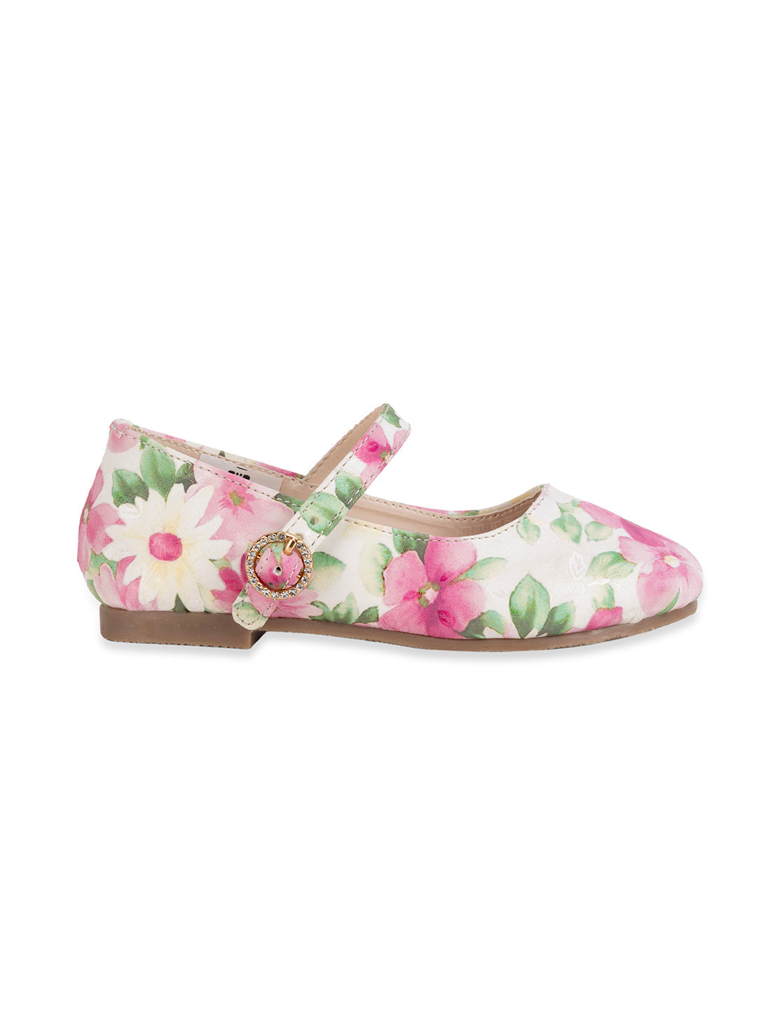 Kids Girls Multi-Color Floral Print Mary Jane Flats With Adjustable Buckle Strap