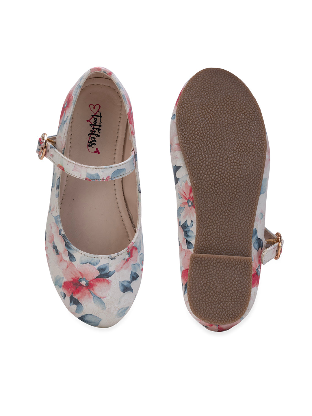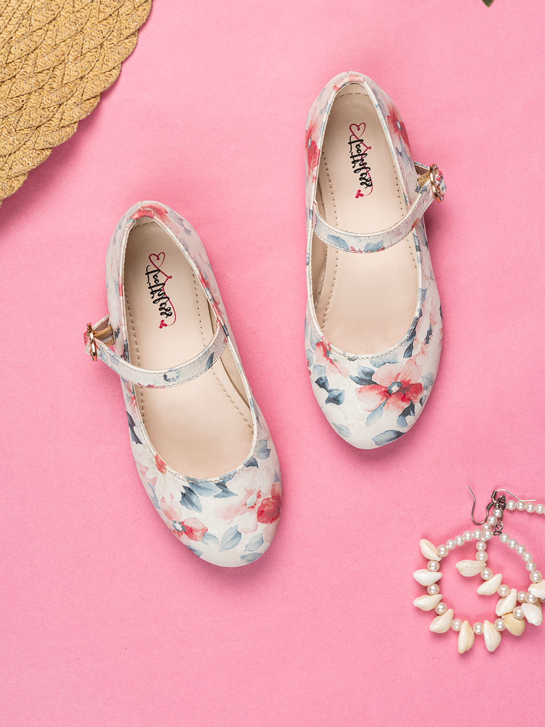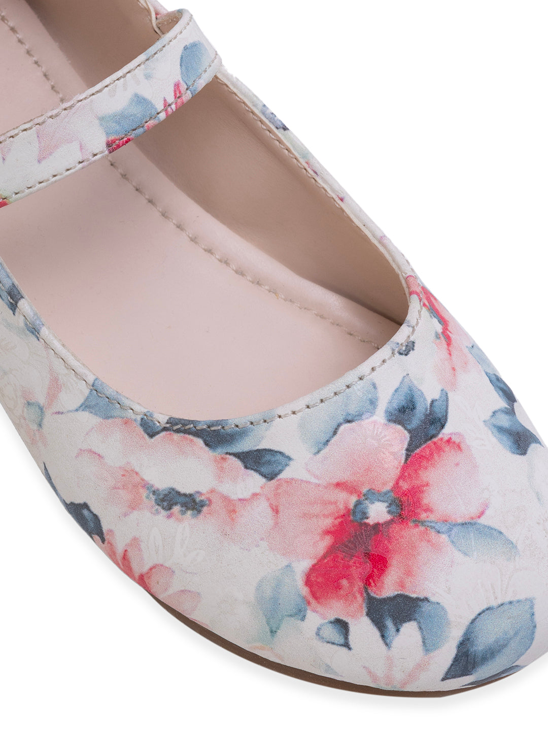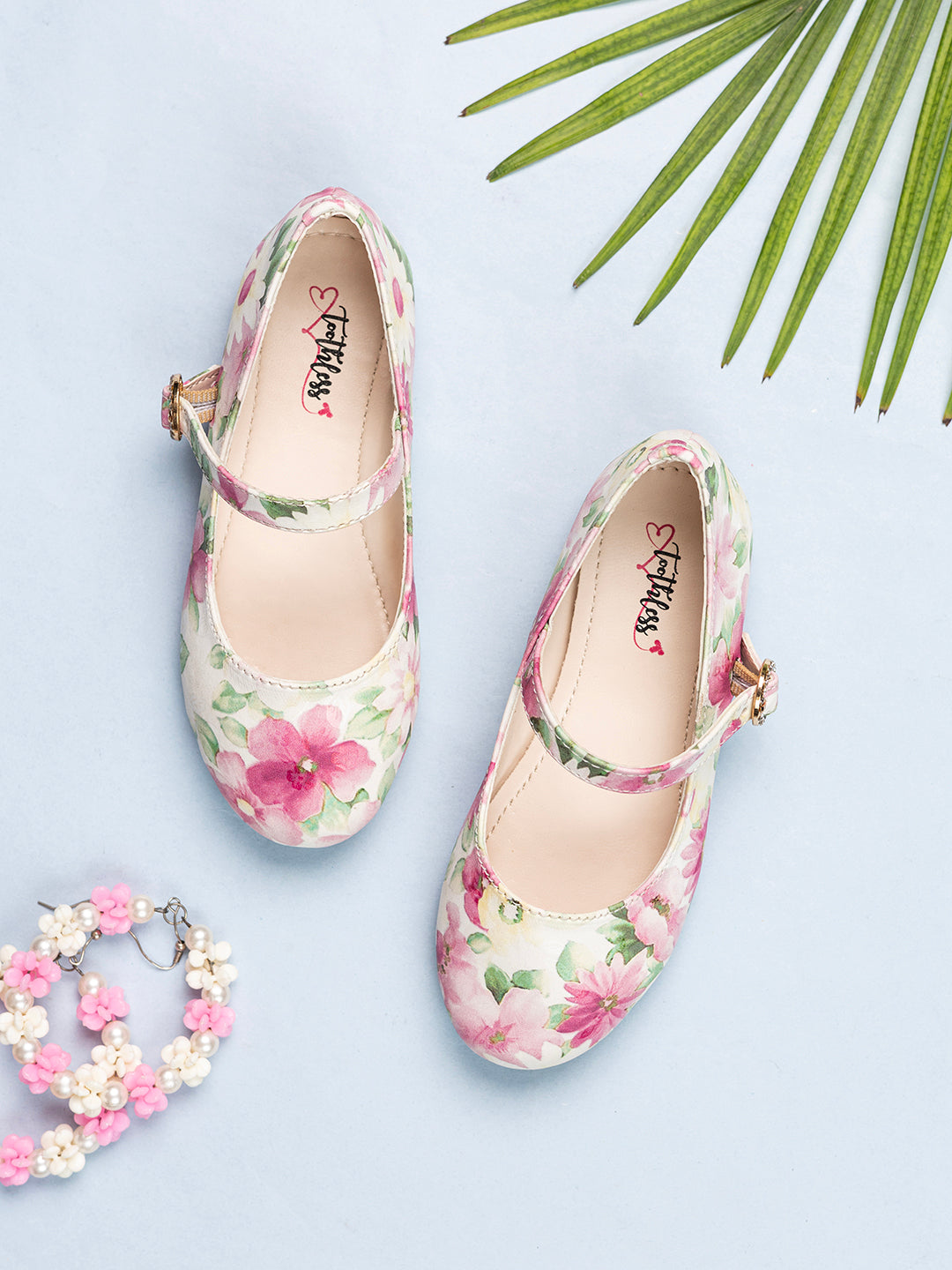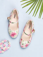 Kids Girls Multi-Color Floral Print Mary Jane Flats With Adjustable Buckle Strap